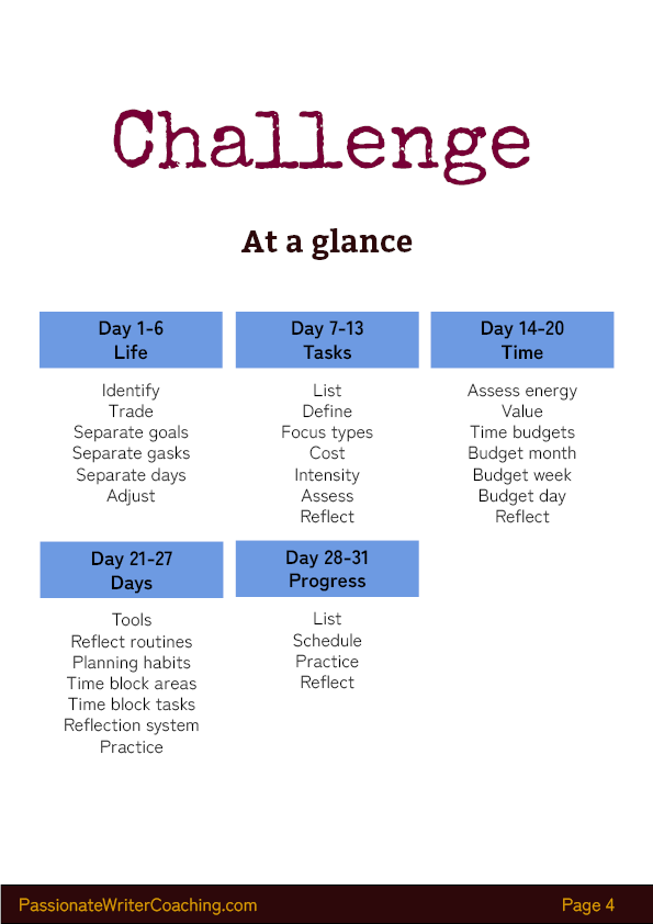 That is why I designed this 31-Day Writing challenge. We will design the perfect plan to manage your time and energy so you can write more and achieve your writing goals.