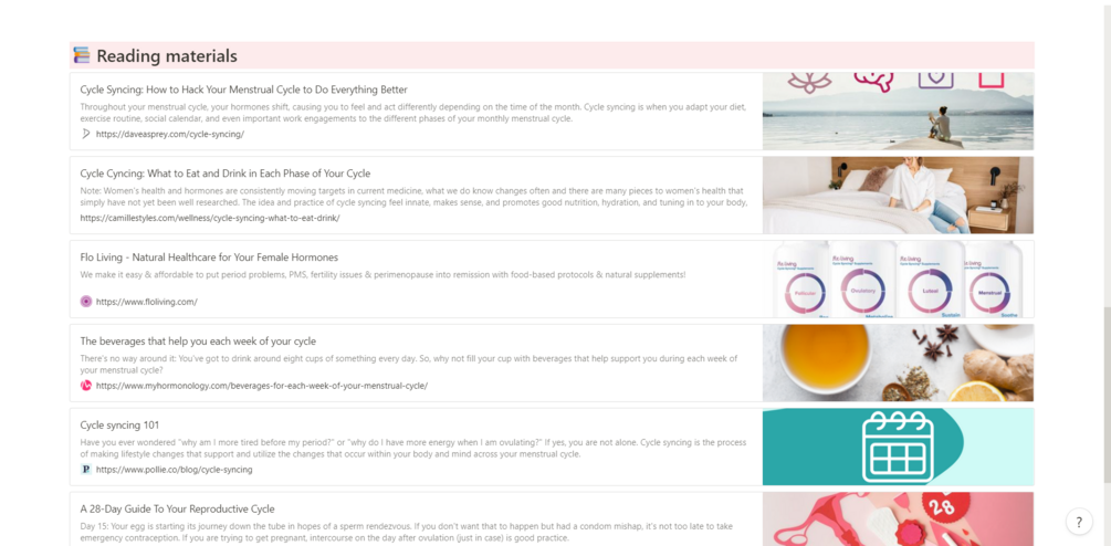 Cycle syncing Notion template for women