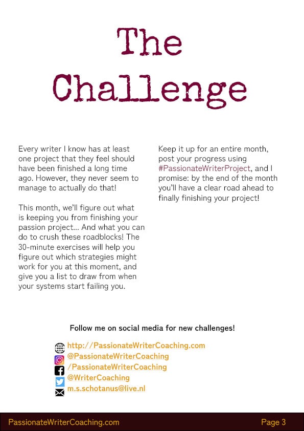 - The challenge was designed by a professional writing coach who specializes in planning and mindset exercises. She developed and tested the exercises over the course of years, resulting in great success for the writers she works with.